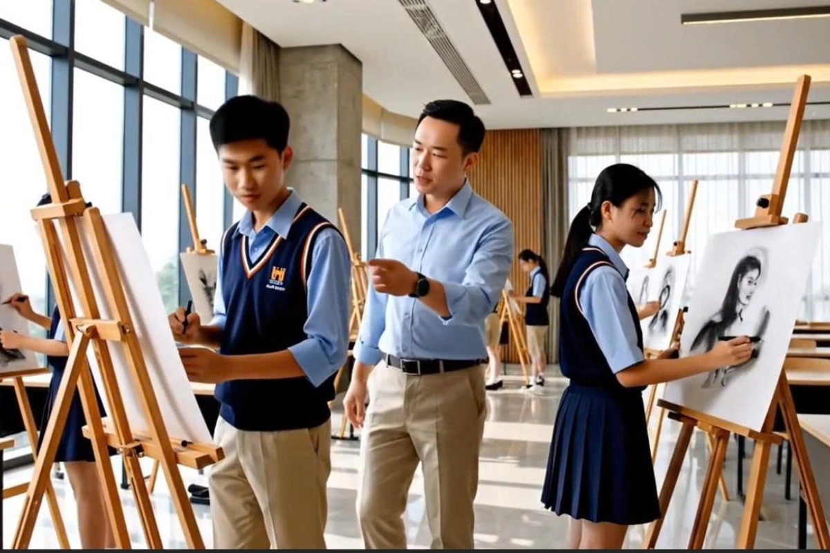 Art Studio tại Trần Hưng Đạo Academy là một xưởng sáng tạo thực thụ, nơi những ý tưởng non nớt được nuôi dưỡng để trở thành những tác phẩm mang đậm dấu ấn cá nhân. Với không gian tràn ngập ánh sáng tự nhiên và đầy đủ học liệu chuyên dụng, đây là môi trường lý tưởng để học sinh: